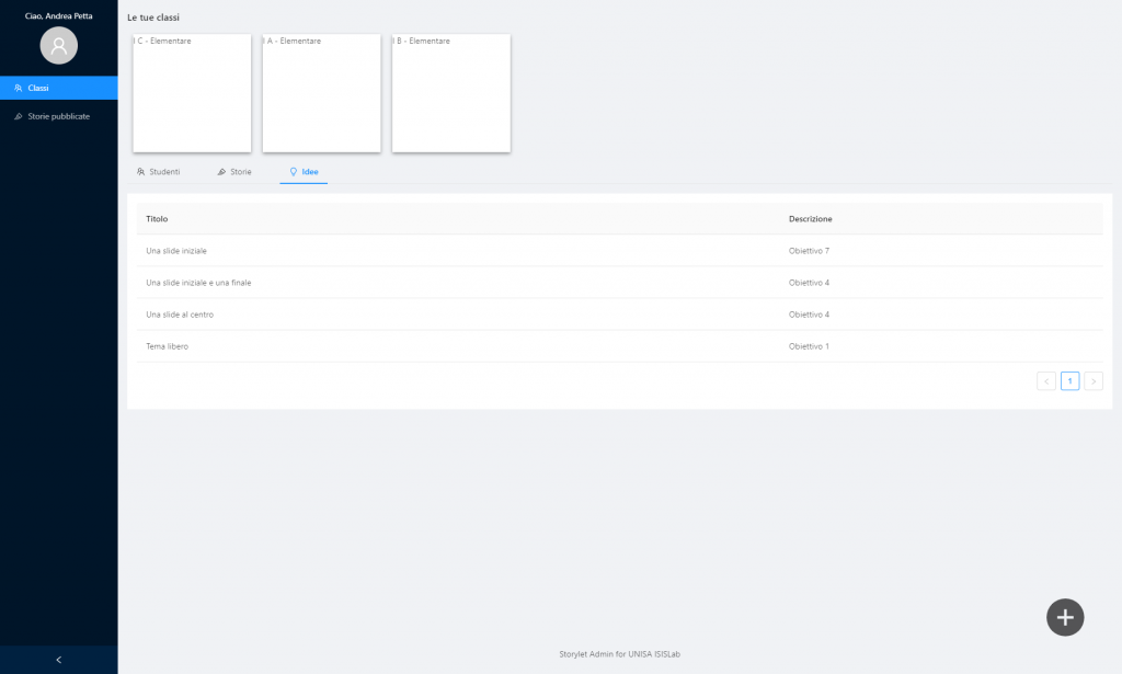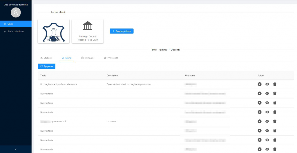 Per ogni classe creata dall’insegnante, vi sono diverse aree di lavoro private: